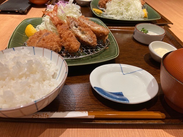 2020-07-23 和幸でランチ3 和幸でランチ「ききょう」を食した またまた、和幸でランチした。今回食したのは「ききょう」でヒレカツ、エビフライ、チーズ入りメンチカツであった。W和幸御飯のようにロースかつが2枚付いてくるということなく、それぞれが個性よろしく美味しかった。最近外食が続いているので、巣ごもりして家庭の食事に戻ろう。エビフライ用のタルタルソースが美味しかった。 和幸「ききょう」 和幸「ききょう」 ←人気ブログランキングに参加しています。ポチっと1票を!